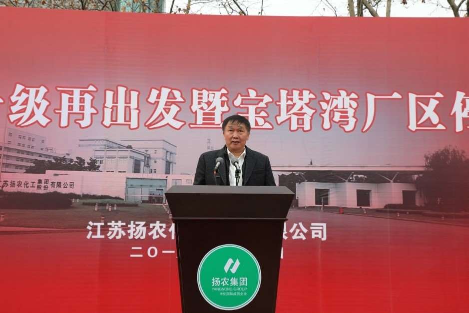 作为一个勇担社会责任的央企,坚定不移践行绿色发展观的重要事件。在这特别值得纪念的一天,我要向扬农集团广大职工为此付出的牺牲和努力表示衷心的感谢,对你们继往开来的创新创业的精神表示崇高的敬意。”
