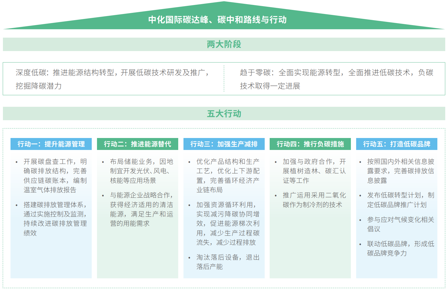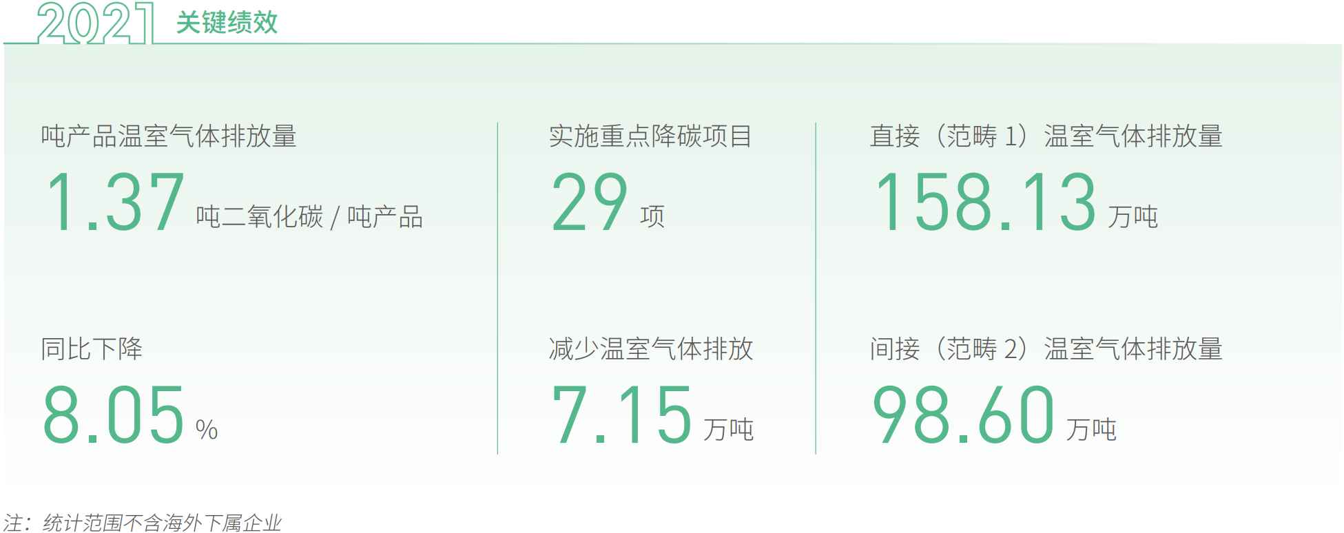 公司公开发布《能源管理及气候变化政策》,将改善能源管理与应对气候变化纳入公司运营管理;根据国家相关法律法规编制温室气体清单,每年根据实际情况动态调整更新;全面梳理节能减排项目,开展生产企业碳盘查工作,对重点企业聘请第三方机构开展专业核查并出具核查报告,建立碳排放数据库,对所有生产运营企业温室气体排放情况进行监测;建立“双碳”工作定期交流协调机制,启动碳达峰与碳中和路径研究工作,编制《碳达峰、碳中和行动方案》,全面部署低碳发展规划;持续深化碳信息披露,接受政府或其他监管机构监管,并将逐步探索气候变化信息披露。