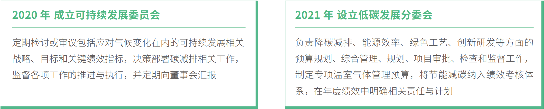 足彩分析 高度重视管理气候变化与碳减排,在董事会成立可持续发展委员会,将低碳发展纳入可持续发展战略,从顶层设计角度明确“双碳”目标战略地位。可持续发展委员会在公司经营层面下设低碳发展分委会,负责细化、夯实公司在低碳发展等领域的工作。