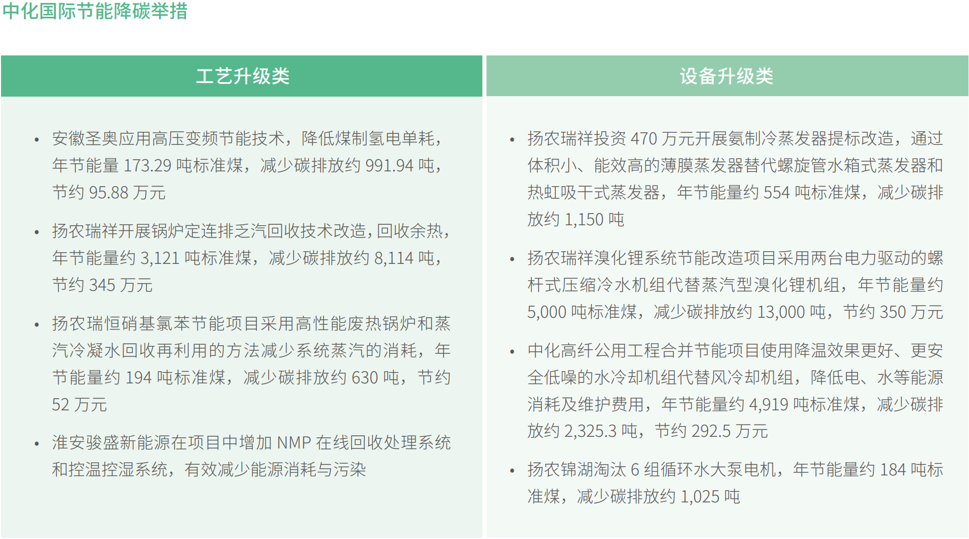 公司战略性提出“十四五”期间降低综合能耗和二氧化碳排放量的发展目标,彰显低碳转型决心,并在诊断对标、清洁能源替代可行性研究、引进节能技术、借鉴先进经验方面制定具体计划。公司定期审核减排措施落实与减碳目标完成情况,通过工艺升级、设备升级、能源替代、循环利用等方式推进节能减排,构建绿色可持续竞争优势。