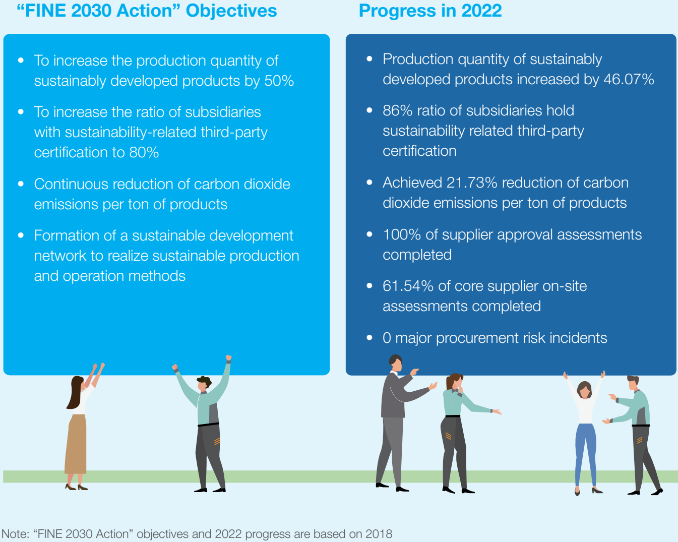 The “FINE 2030 Action”, based on Goal 12: Responsible Consumption and Production and Goal 13: Climate Action in the Sustainable Development Goals (SDGs) of the United Nations that are closely related to the company, contributes to realization of SDGs with innovation and responsibility taking.