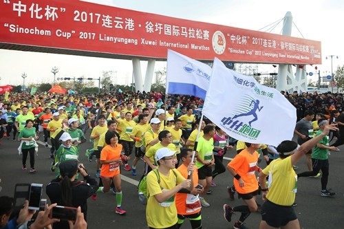 On the morning of October 29, the 2017 "Sinochem Cup" Lianyungang·Xuwei International Marathon kicked off in the Xuwei New Area of Lianyungang. As the title sponsor of the event, the chemical giant Sinochem International organized a "Sinochem running team" of up to 50 members to participate in the marathon. Led by Chairman Feng Zhibin and General Manager Liu Hongsheng, the team put the corporate vision "Fine Chemistry, Green Life" into practice through active and healthy green running.