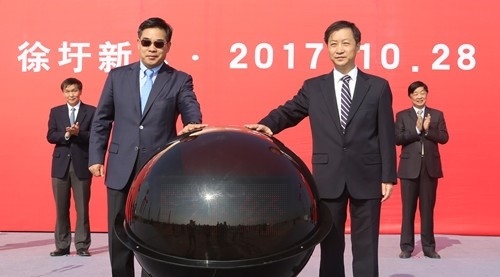 (Feng Zhibin, President of Sinochem's Chemicals SBU and Wang Jiapei, Executive Deputy Mayor of Lianyungang Municipal Government, lighted the crystal ball to launch the project)