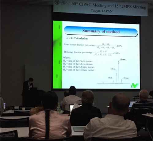 (扬农股份GLP实验室负责人蒋博士在做CIPAC右旋胺菊酯分析方法汇报)