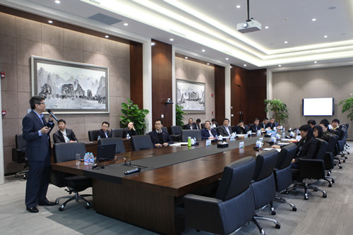 财务总监秦晋克代表足彩分析领导班子向董主席介绍了足彩分析的组织架构、业务结构、战略发展目标、管理体系、足彩分析