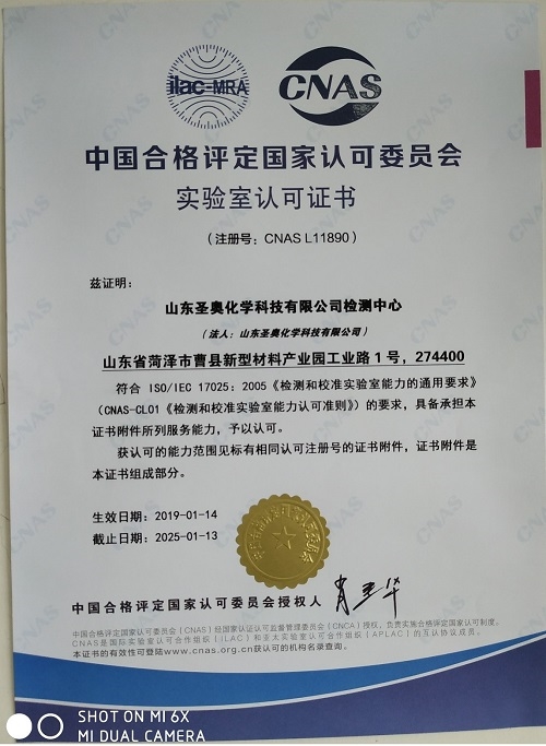 山东圣奥自2017年9月起运行ISO/IEC17025实验室管理体系,2018年8月正式向CNAS提交申请,经过人员管理、设备管理、方法验证、环境控制、量值溯源、质量控制、质量保证、结果报告等方面的评审,涉及的三种主要产品、八个检测项目一次性通过CNAS认可,这标志着山东圣奥中心实验室具备了国际及国家认可的管理水平和检测能力,提升了足彩分析产品的公信力及品牌的影响力。