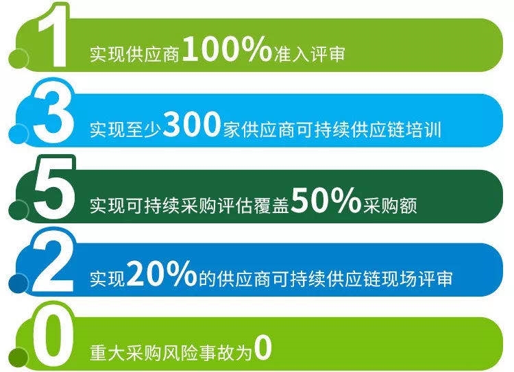 化工事业部不断完善可持续供应链管理体系,2018年制定了“可持续供应链”三年规划,并发布了13520可持续供应链目标。